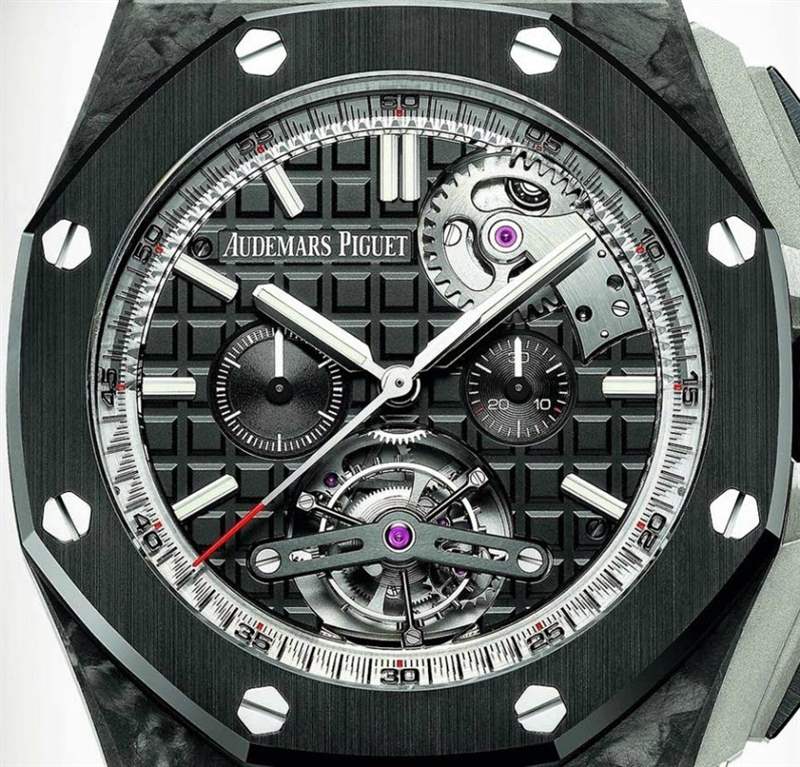 安裝在表盤上的外圍自動轉子是幾年前推出的現有 Audemars Piguet 2897 機芯的一個特點。機芯以 3 赫茲頻率運行,提供 65 小時動力儲存,裝飾極其精美,透過表底蓋一覽無余。當然,那里沒有轉子可以阻擋對機芯進行廣泛的手工精加工——這正是外圍轉子受到重視的原因。這款新的 2014 手表版本本質上是 Audemars Piguet Royal Oak Offshore Automatic Tourbillon Chronograph ref 的新版本。26550AU.OO.A002CA.01 最初于 2011 年首次亮相,但從未真正發售過。所以從某種意義上說,這款新車型是品牌多年前啟動的項目的總和。
