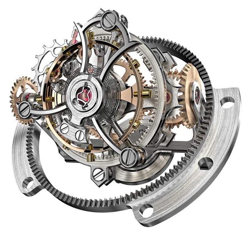 提供多軸旋轉(zhuǎn)點的目的是什么?好吧,除了藝術(shù)和機械價值之外,真的沒有。事實證明,陀飛輪機構(gòu)——最初設(shè)計用于幫助懷表更加準確——并沒有真正為腕表增加太多。我們經(jīng)常看到陀飛輪,因為它們具有裝飾價值和復(fù)雜性。陀飛輪不僅設(shè)計難,組裝起來也難。這么小的地方,簡直就是這么多零件。