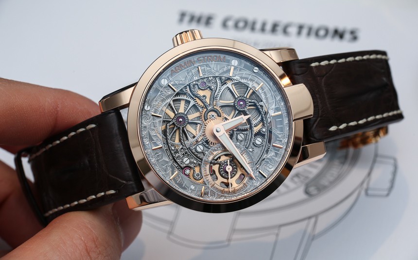 事實證明,我所有的秘密關注只會讓事情變得更糟。我希望在私下看了 One Week Skeleton 足夠長的時間后,我會忘記它,并認為它只是另一種暫時的手表迷戀。然而這一次我認為鐘表的欲望太深了。Armin Strom 采用 43.40 毫米寬的表殼,由拋光和拉絲 18k 玫瑰金制成,包括他們慣用的“表殼標簽”,用于簽名。沒錯,他們會將您的姓名首字母寫在表殼上,以表明您對他們手表的所有權。我多么想要一周骨架上的“AA”!廣告留言廣告信息結束