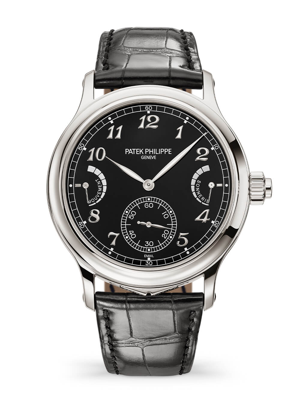 在紙面上,6301P 與百達(dá)翡麗最復(fù)雜的時(shí)計(jì)大師編鐘有很多共同之處。它擁有全套引人注目的功能:前面提到的大自鳴、小自鳴(按小時(shí)報(bào)時(shí))和三問報(bào)時(shí)(按指令報(bào)時(shí))。