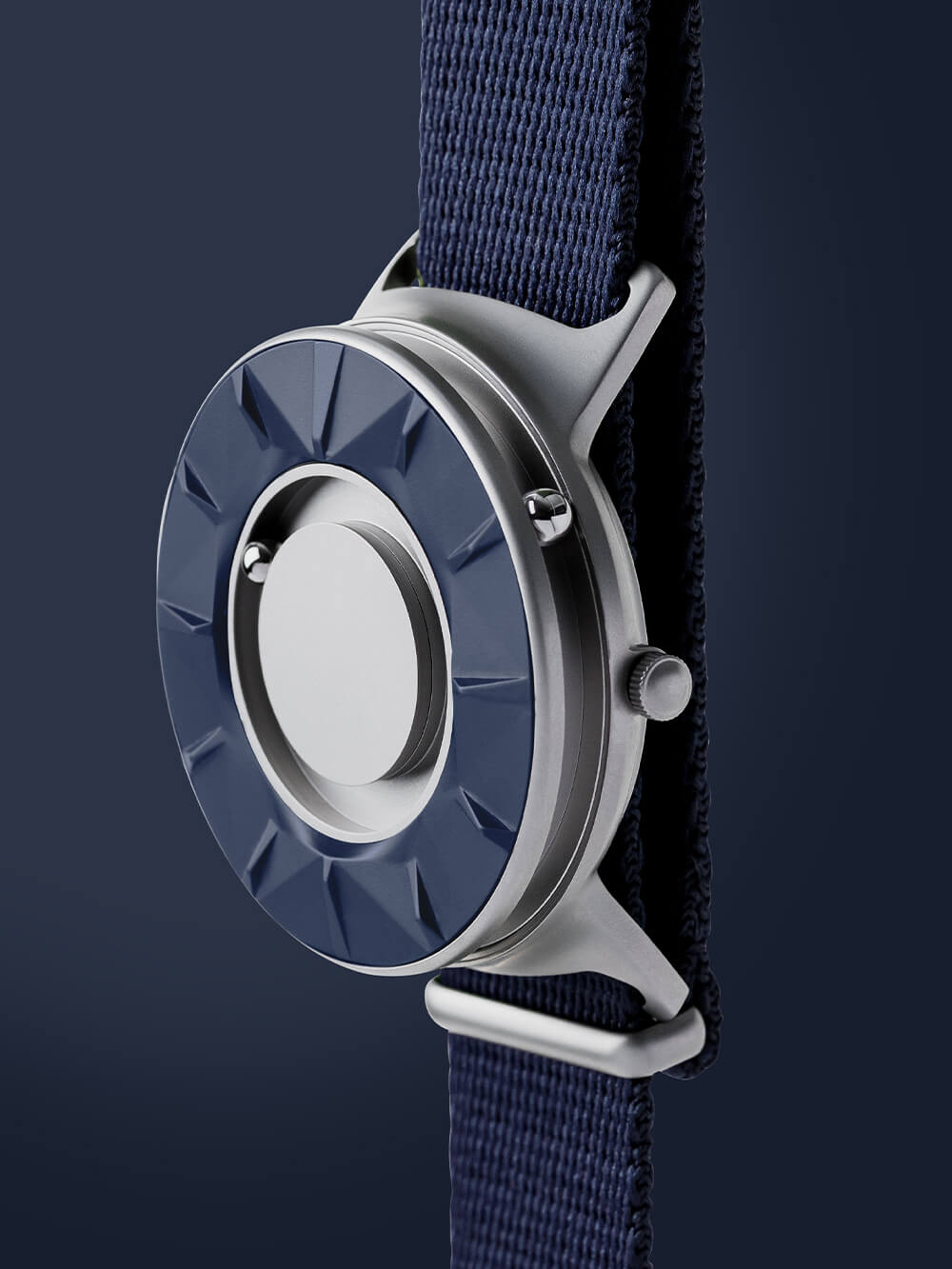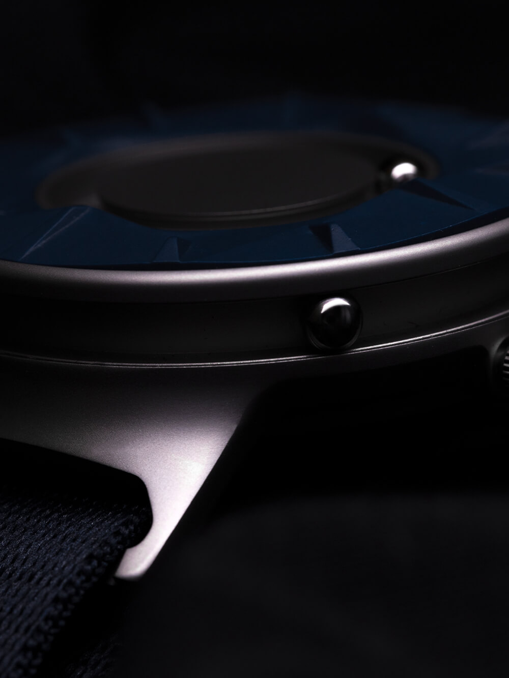 從本質(zhì)上講,Apex 是 Eone 的野外觀察。當(dāng)然,由于獨(dú)特的滾珠軸承分鐘和小時(shí)指示器,以及表盤(pán)周圍的凸起時(shí)標(biāo),盲人仍然可以閱讀它。但新表沒(méi)有使用 Bradley 上的鉸接式表耳,而是使用堅(jiān)固的固定表耳。