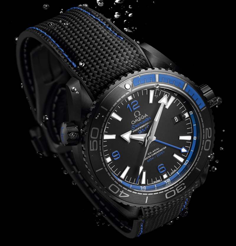另一款海馬系列海洋宇宙600米45.5毫米至臻天文臺GMT「深海之黑」專業(yè)潛水表,其啞光黑色表殼為歐米茄采用改良工藝由整塊陶瓷精制而成,酷炫之余尤其地時尚。其單向旋轉表圈、24小時標識、GMT指針、阿拉伯數(shù)字時標乃至橡膠表帶上的縫線都點綴著藍色,恰如其分地揭示了其專業(yè)潛水表的特殊定位。設計元素,直接凸顯了該表的高科技含量,也讓它格外吸引眼球。
