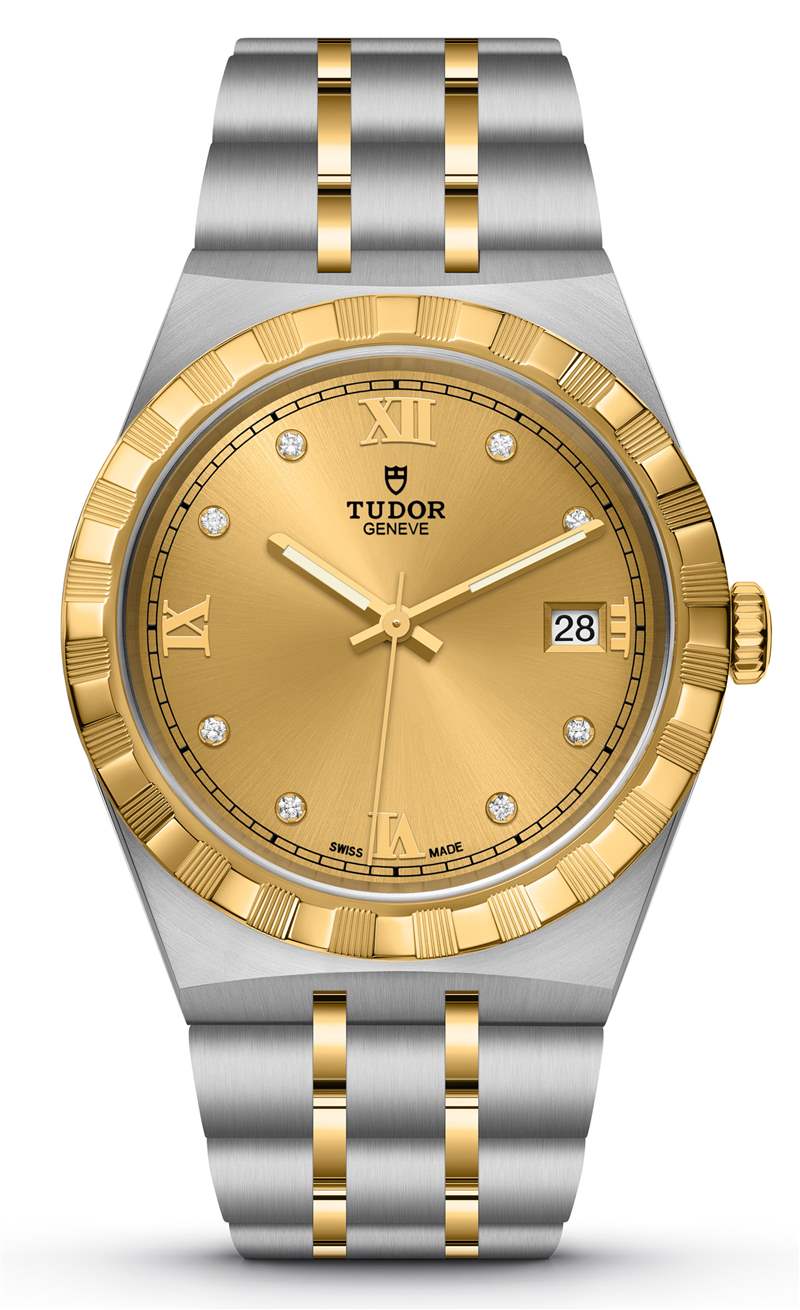 除精鋼外,帝舵還提供皇家雙色精鋼和 18k 黃金版本(28603/28503 系列)。對于后者,18k 金用于缺口表圈、表冠和一些手鏈鏈節。皇家配備四種男士表盤顏色,包括黑色、藍色、銀色和金色。確實,在許多豪華手表都采用鮮艷色彩的時代,色彩并不令人興奮,但皇室成員本質上一直是保守的……然而,帝舵確實提供了一些帶有部分鑲鉆時標的表盤選項,以補充其他全羅馬數字標記表盤.