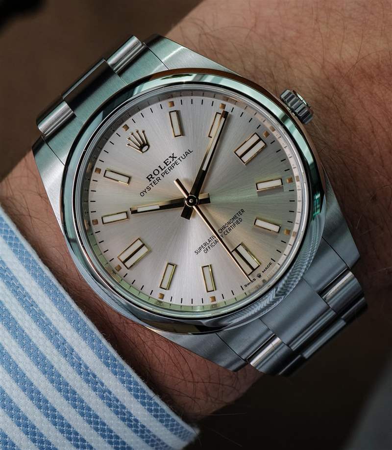 Oyster Perpetual 41 的全拉絲精鋼表殼搭配與之相配的精鋼表鏈,該表鏈采用勞力士的更新設(shè)計(jì),零件之間的公差似乎更低。手鐲確實(shí)有一個(gè)“易于延伸”的表扣,但沒(méi)有更昂貴的勞力士 Submariner 型號(hào)中更高級(jí)的 Glidelock 微調(diào)功能。Oyster Perpetual 41 腕表的表殼防水深度達(dá) 100 米。截至 2020 年,勞力士現(xiàn)在生產(chǎn) 31、34、36 和 41 毫米寬尺寸的蠔??式恒動(dòng)腕表。許多手表都有表盤顏色,因此當(dāng)有人選擇要購(gòu)買的手表時(shí)應(yīng)該小心。
