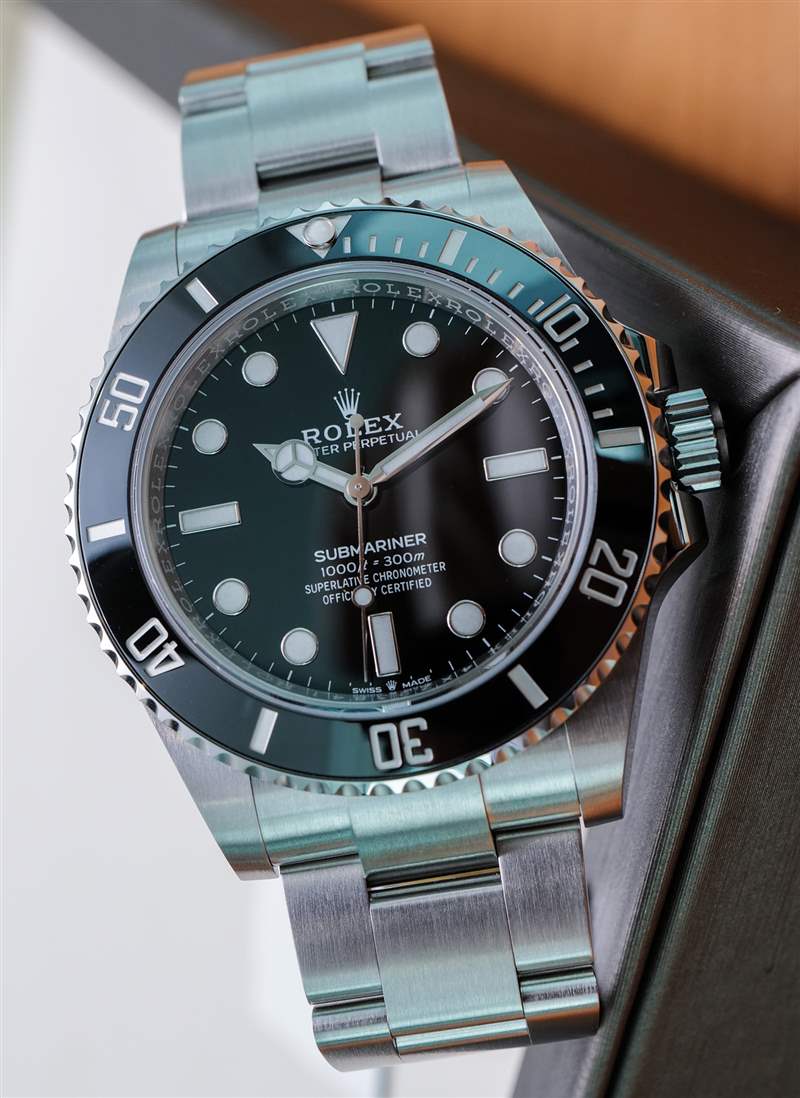 與勞力士 Submariner 手表“頭”一樣漂亮的是手鐲。與 No Date Submariner 的其他產品一樣,該表鏈經過重新設計,盡管它在風格上與之前的三鏈 Oyster 表鏈(市場上最好的金屬表鏈之一)或多或少相同。手鏈仍然具有蠔式折疊安全扣和出色的尺寸微調勞力士 Glidelock 功能。在我看來,更新后的 Submariner 表鏈最大的新聞是鏈節緊密結合在一起 – 使外觀更加“無間隙”,更具高端感,與當前高人氣的“鋼表鏈表”相得益彰。