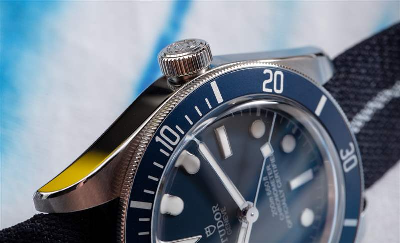 39 毫米寬的表殼是同價(jià)位中最好的鋼材精加工工作之一。表殼結(jié)合了拋光和拉絲表面,并在表耳上增加了拋光角度(角度)。這在設(shè)計(jì)上并不是什么革命性的東西,但它是您在這個(gè)價(jià)位上可以在鐘表中看到的一些最好的結(jié)果(如果不是最好的話)。表冠上方是刻在側(cè)面的都鐸王朝“玫瑰”標(biāo)志。
