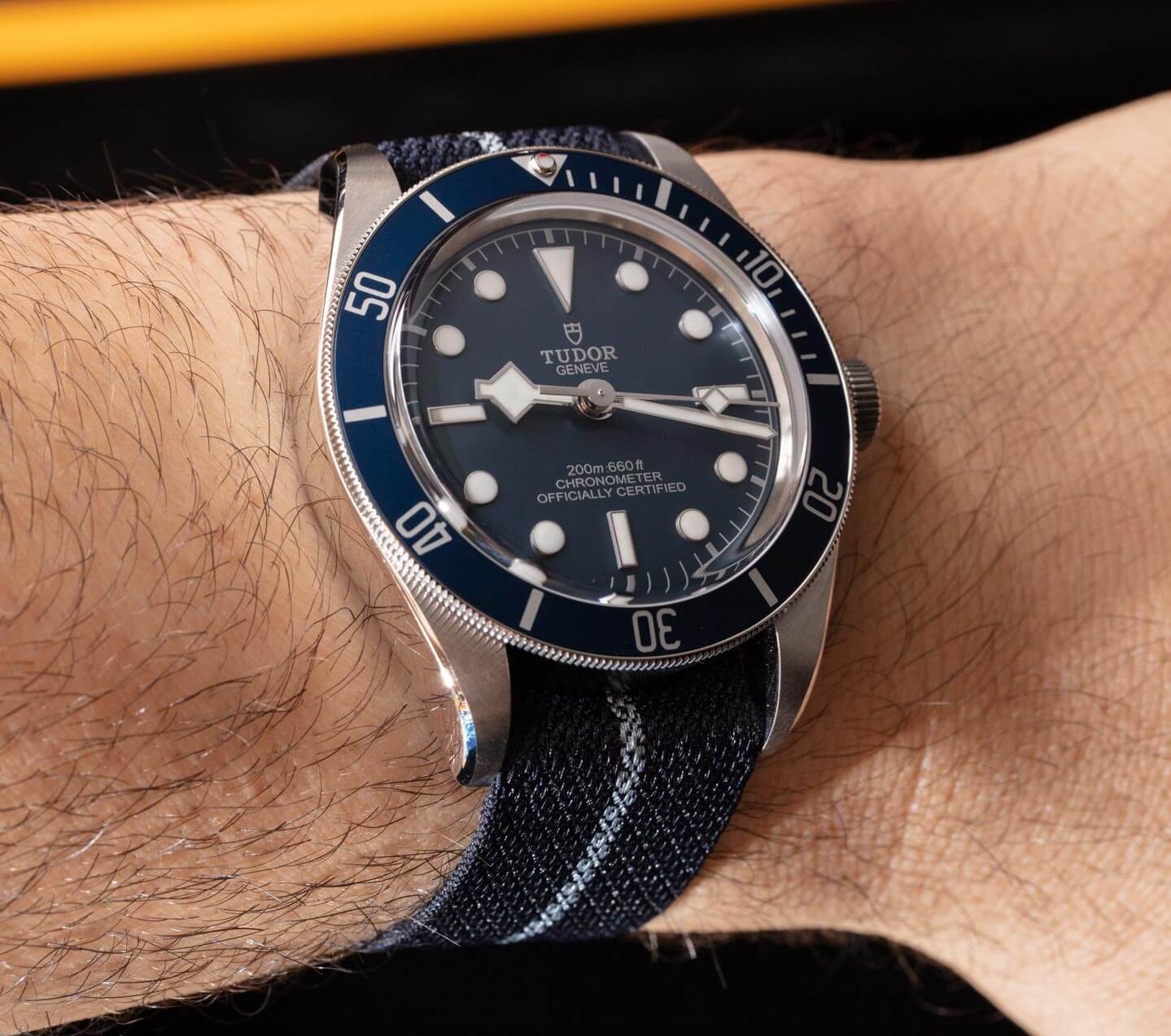 帝舵提供三個(gè)版本的參考 M79030B 碧灣五十八藍(lán),在表帶方面有所不同。參考型號(hào) M79030B-0001 配備了出色的匹配鋼“鉚釘”表鏈,而這款 M79030B-0003 配備了定制的帝舵 NATO 風(fēng)格表帶,該表帶采用藍(lán)色尼龍紡織表帶,帶有優(yōu)質(zhì)帝舵鋼扣和硬件。BB58 參考 M79030B-0002 配備藍(lán)色皮革表帶,價(jià)格與北約式表帶上的 M79030B-0003 相同。