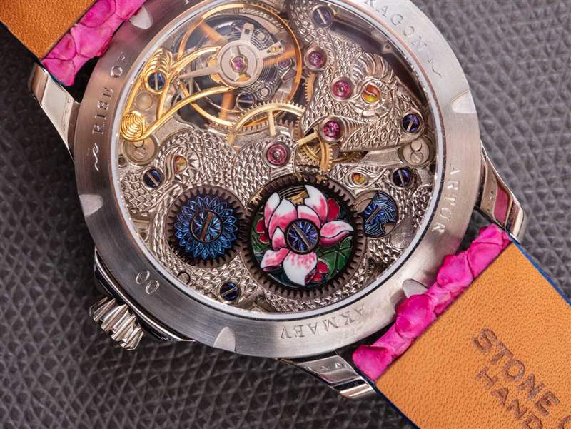主發(fā)條盒上也采用了類似的花卉設(shè)計,可以通過手表底蓋的藍寶石水晶窗看到。大部分機芯橋板上刻有一系列圖案,旨在喚起龍鱗的感覺。整個作品旨在為未來的鐘表設(shè)計重新設(shè)計。Artur Akmaev 個人有興趣進一步探索龍主題,因此藍龍崛起的基本表盤布局和設(shè)計將在未來的手表中重復使用,但它們將擁有自己的特殊顏色和背景圖形,讓它們能夠慶祝不同的主題。創(chuàng)建這樣一個表盤“模板”的目的是讓 Artur Akmaev 能夠更有效地生產(chǎn)這些藝術(shù)手表,從而以更實惠的價格出售它們。廣告訊息廣告信息結(jié)束