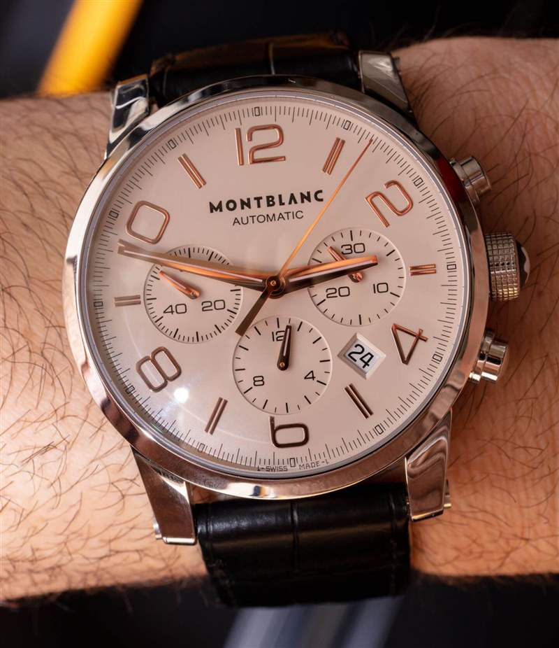 萬寶龍生產(chǎn)了這個(gè)特殊的時(shí)光行者計(jì)時(shí)表模型系列,有幾個(gè)表盤版本,但在這一代時(shí)光行者表殼退役之前,萬寶龍將其呈現(xiàn)為多種形式和不同的機(jī)芯。盡管 Timewalker 至少有三個(gè)不同的計(jì)時(shí)碼表版本,但我發(fā)現(xiàn)這種帶有瑞士制造 ETA Valjoux 7753 的原創(chuàng)計(jì)時(shí)碼表是最令人滿意的。參考 101549 有一個(gè)銀色表盤,玫瑰金色指針和時(shí)標(biāo)。萬寶龍還生產(chǎn)了一款全銀表盤,配有一條我非常喜歡的棕色表帶。我認(rèn)為黑色表盤也是可用的。萬寶龍甚至在獨(dú)特的金屬表鏈上提供了一個(gè)有趣的版本,帶有鏤空鏈節(jié)和黑色陶瓷中心鏈節(jié)。