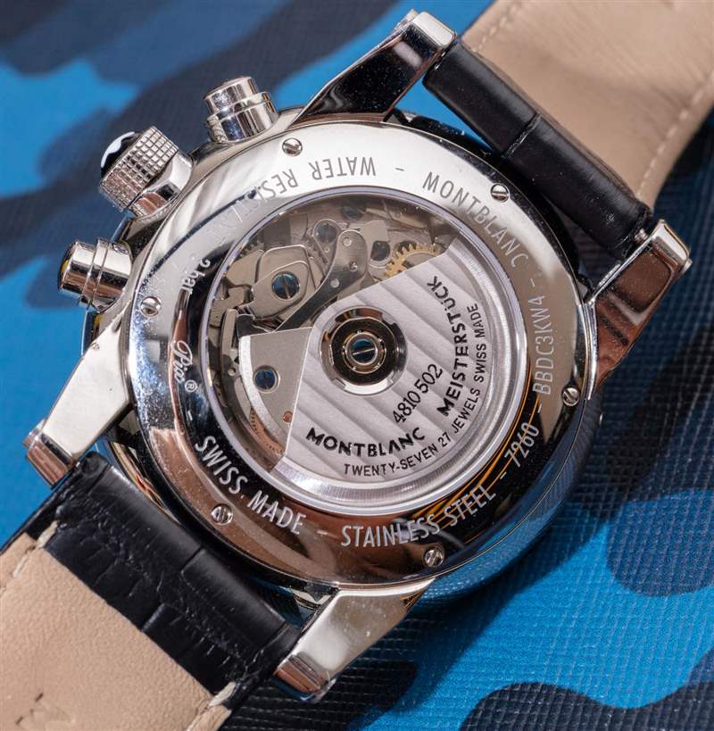 萬寶龍將手表內(nèi)部的 ETA Valjoux 7753 自動(dòng)機(jī)芯稱為 MB 25.02 機(jī)芯。7753 是 7750 的不同版本,計(jì)時(shí)碼表子表盤的方向?yàn)椤皌ricompax”陣列。它還在表殼的 10 點(diǎn)鐘位置設(shè)有一個(gè)嵌入式日期校正按鈕。機(jī)芯以每小時(shí) 28,800 次的速度運(yùn)轉(zhuǎn),動(dòng)力儲存約 46 小時(shí)。萬寶龍選擇了該機(jī)芯的中等裝飾版本,其中包括自動(dòng)轉(zhuǎn)子上的日內(nèi)瓦條紋拋光貼花,以及除使用藍(lán)鋼螺釘外的其他未完成的機(jī)芯。