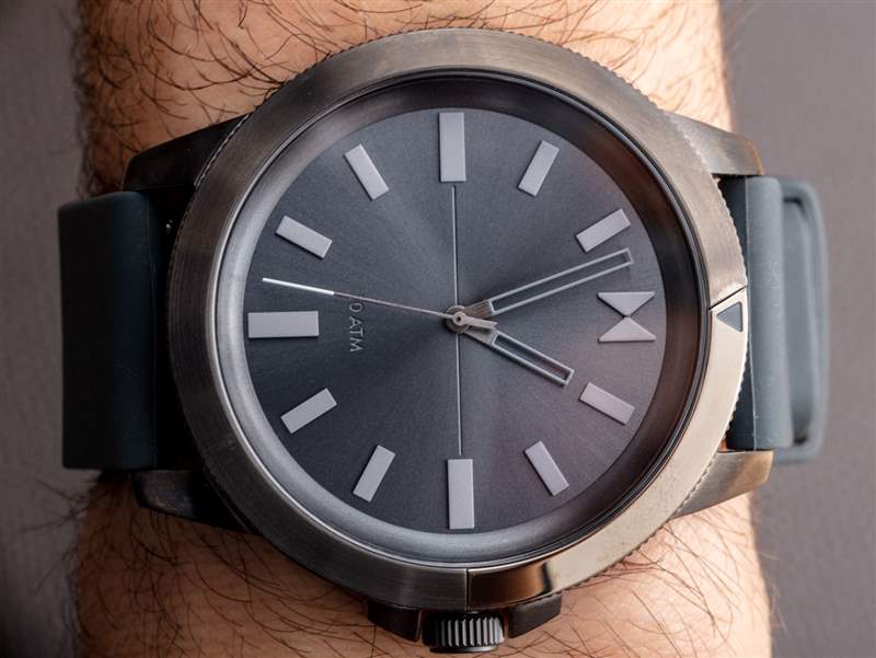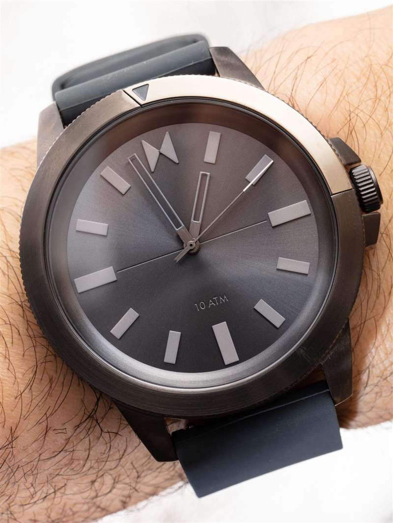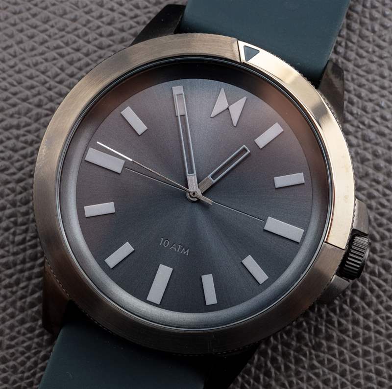 整體表盤設計本身令人愉悅,除了具有 10 個大氣壓(100 米)的防水等級外,還有些無菌。考慮到它是 MVMT 標志,12 點鐘位置標記用作品牌標識符。表盤上方是平坦的礦物水晶。表殼寬 45 毫米,雕刻精美,佩戴在手腕上既舒適又足夠吸引人。表盤周圍是一個單向點擊旋轉表圈,在這個價格范圍內比大多數都好。手表內部是日本 Miyota 石英機芯。