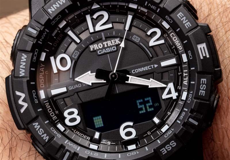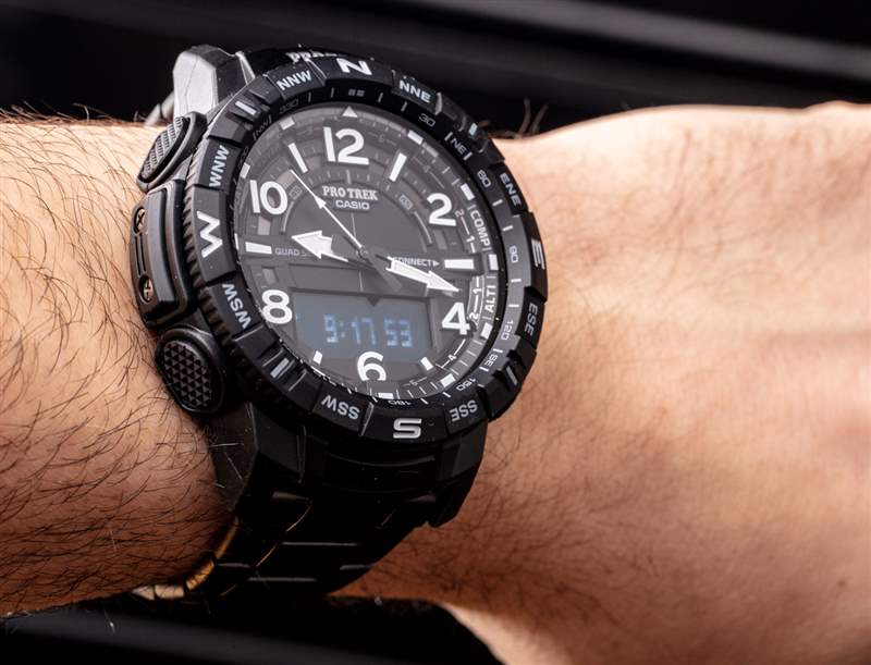手鐲有兩個缺點。首先,如果你的手腕較小,比如我的手腕,手鐲與表殼的連接方式意味著表殼的凸耳會略微突出。無論如何,這不是一個交易破壞者,但這是一個不雅點,我認為卡西歐應該設計得更好一點。其次,表鏈僅提供較小程度的微調(展開時只需一個額外的彈簧桿孔,以幫助理想地調整手表尺寸)。我想說的是,手鐲尺寸的選項適用于大多數手腕,不過,作為一款運動手表,這款 Pro Trek 旨在佩戴得足夠舒適,不會四處走動,但又不會舒適到限制手腕的運動。廣告訊息廣告信息結束