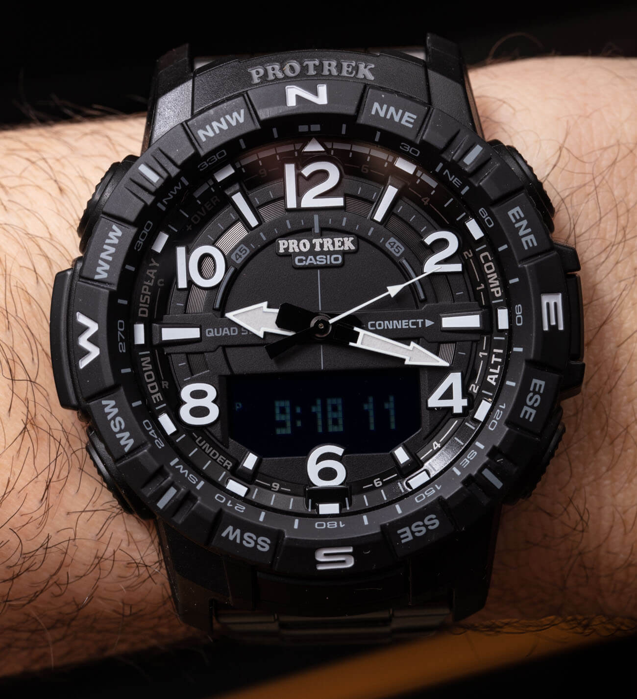 與此同時,卡西歐目前正在銷售 Pro Trek PRT-B50 和 G-Shock Mudmaster GG-B100,它們共享相同的基本“模塊”(卡西歐用于其機芯的術語)。更重要的是,按照配置,這款黑色鈦手鏈上的 Pro Trek PRT-B50 和 Mudmaster GG-B100 的零售價相同。消費者有理由對哪種模式適合他們感到困惑。公平地說,基本型號 Pro Trek-B50 的價格要便宜得多,為 220 美元,而這個帶有黑色 IP 涂層鈦手鏈的版本價格更高。從本質上講,G-Shock Mudmaster 是更昂貴的型號,因此,表殼更耐用、更耐磨(盡管它因此更大)。廣告訊息廣告信息結束