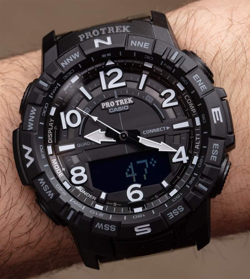 調整手鐲的尺寸是最好的部分,因為卡西歐設計了一個非常聰明的系統,它確實需要一個工具,但是如果你沒有它,你周圍的東西可以很容易地翻倍以松開帶子。我也相信這種新的鏈節設計有助于手鏈更薄,同時保持高度的結構完整性。不,這條表帶不具備 G-Shock 耐用性,但我相信它會滿足絕大多數用途。帶有手表的小型塑料工具供應商可讓您按下表殼后部的隱藏推桿。反過來,這會導致鏈節中的兩個固定銷縮回并使其分離。如果你知道你在做什么,你可以在一分鐘內從一個完全沒有尺寸的手鐲變成一個有尺寸的手鐲。這是令人驚奇的,因為大多數其他手鐲都需要特殊的彈簧桿拆卸工具、穩定的雙手和一些耐心,因為整個練習可能需要 15 分鐘或更長時間,具體取決于您的尺寸預測有多準確。另外,請注意折疊展開式表扣相對較薄和謹慎。我還應該提到的是,除了手鏈具有快速釋放末端鏈接外,Pro-Trek 表殼還設計為可以接受許多售后市場的 24 毫米寬的表帶。(G-Shock 手表通常沒有可拆卸的表帶,如果您確實需要新表帶,您通常只能使用為特定情況制作的表帶。)我還應該提到的是,除了手鏈具有快速釋放末端鏈接外,Pro-Trek 表殼還設計為可以接受許多售后市場的 24 毫米寬的表帶。(G-Shock 手表通常沒有可拆卸的表帶,如果您確實需要新表帶,您通常只能使用為特定情況制作的表帶。)我還應該提到的是,除了手鏈具有快速釋放末端鏈接外,Pro-Trek 表殼還設計為可以接受許多售后市場的 24 毫米寬的表帶。(G-Shock 手表通常沒有可拆卸的表帶,如果您確實需要新表帶,您通常只能使用為特定情況制作的表帶。)