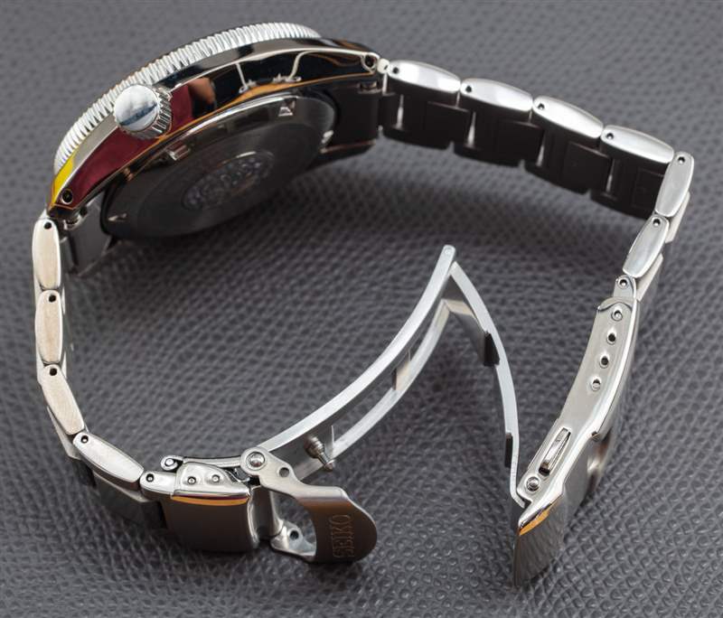 與之前的一些硬件相比,精工特別為這款價值 1000 美元以上的手表升級了手鐲。鋼制表鏈采用銑削鏈節和折疊式安全展開扣的升級部件,感覺更加堅固。雖然這確實是一種升級,但我認為精工仍應努力逐步淘汰盡可能多的沖壓金屬部件。對于精工收藏家來說,這些感覺非常“最后一代”,即使新手不會知道其中的區別。手鐲在其他方面很舒服,并且有潛水員的延伸(這總是讓我很開心,因為如果你不知道自己在做什么,打開和關閉是很有挑戰性的)。好像大多數人都不會實際操作此功能(從統計上講,就是這樣)。對于價格點,