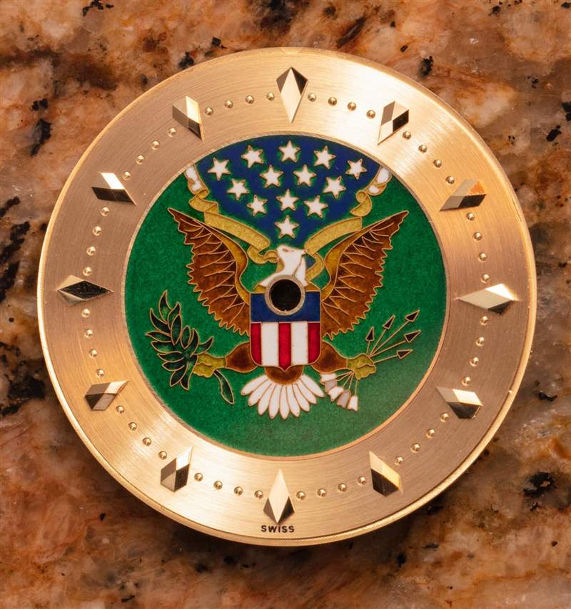 底座表盤本身是 18k 金,帶有立體時標。這里的表盤上沒有任何勞力士標志,因為這樣做會在涉及知識產權法時陷入泥潭。雖然 Ematelier 實際上可以在表盤上使用正宗的勞力士皇冠標志(來自其他地方),如果愿意的話。有趣的是,這些售后改裝的勞力士手表是完全可逆的,這意味著制表師可以在重新組裝機芯部件的同時卸下琺瑯表盤,然后更換原裝勞力士表盤。手表上很少有其他售后流程可以換回原來的。