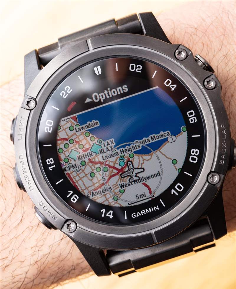 任何習慣于 Garmin 自己的智能手表操作系統的人都會熟悉 D2 Delta 及其非觸摸屏以及圍繞外殼側面的五個操作按鈕。這款高端智能手表在寬大的 30.4 毫米跨反射全彩屏幕(也有背光)上配有藍寶石水晶。Delta D2 PX 有一些用于各種 GPS 和飛行員功能的特殊軟件。手表甚至可以連接到可能安裝在飛機上的相關 Garmin 航空電子設備,以獲得終極的飛行體驗。