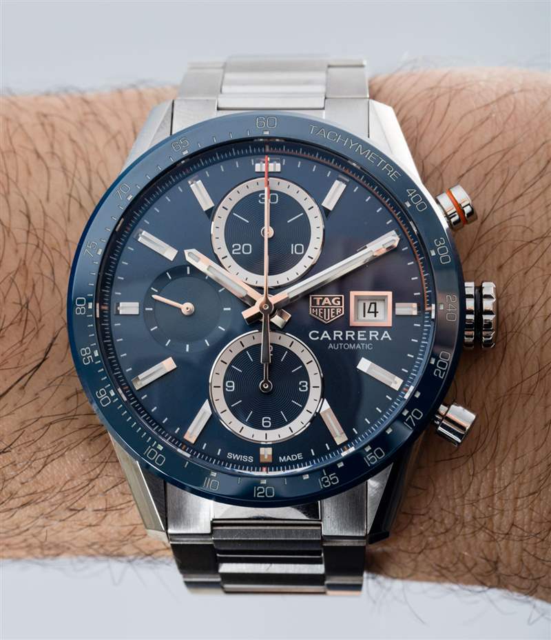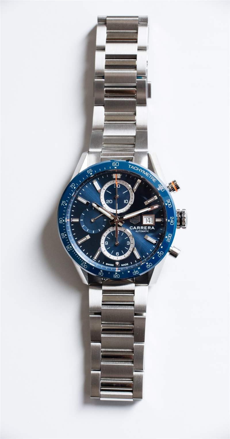 在我看來,Carrera 表殼的鋒利表耳在手鐲和表帶上總是看起來不錯。Carrera 手鏈與您所能獲得的一樣優雅,但看起來您最喜歡的建筑材料仍然是棱角分明的混凝土塊。它的外觀很漂亮,我認為它會吸引那些真正在手表上尋求陽剛之氣的人(盡管不是每個人都在尋找那個)。