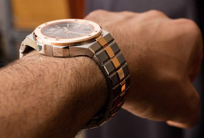 男裝 Alpine Eagle 系列的發(fā)布系列(目前女裝款式的數(shù)量遠(yuǎn)遠(yuǎn)超過(guò)男裝款式)只有三個(gè)款式。一種是帶有藍(lán)色表盤(pán)的全鋼材質(zhì)(可以預(yù)測(cè),這是真的,但仍然是一種有效的調(diào)色板),然后是相同的型號(hào),但帶有灰色表盤(pán)(例如這款雙色調(diào)型號(hào))。