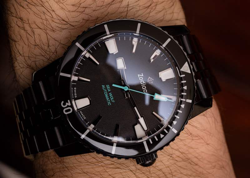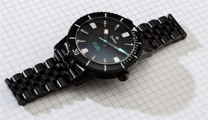 目前,一塊全黑的 Zodiac Super Sea Wolf 53 Compression Automatic 手表只比同樣型號(hào)的天然鋼表殼貴 100 美元。正如我所說(shuō),總體而言,這是一個(gè)相當(dāng)不錯(cuò)的價(jià)值。