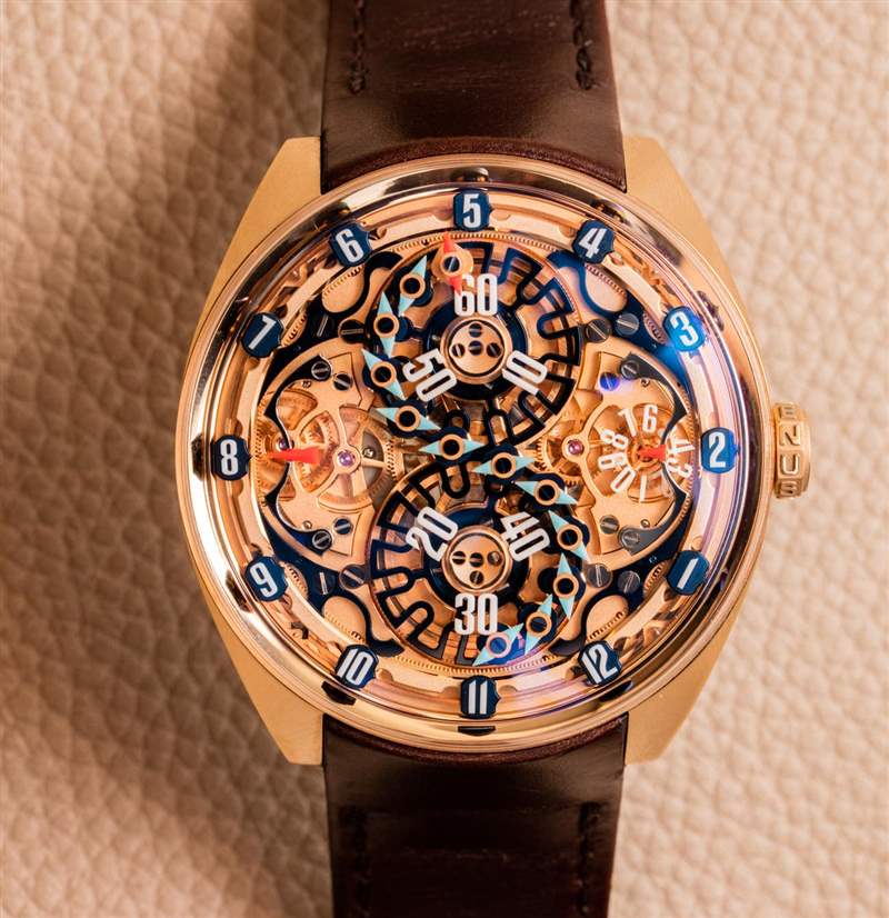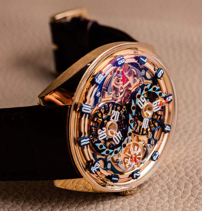手表內(nèi)部的機(jī)芯是 Genus calibre 160,它是手動(dòng)上鏈的,由 418 個(gè)零件組成(其中許多零件可能在復(fù)雜的時(shí)間指示系統(tǒng)中)。機(jī)芯以 2.5 赫茲(18,000 次/小時(shí))的頻率運(yùn)行,動(dòng)力儲(chǔ)存為 50 小時(shí)。該機(jī)芯包括一個(gè)底座以及一個(gè)用于特定時(shí)間指示系統(tǒng)的底座上的模塊。這意味著在未來,Genus 可以重新設(shè)計(jì)部分時(shí)間指示系統(tǒng)(或添加到其中),同時(shí)保持相同的基本運(yùn)動(dòng)架構(gòu)。