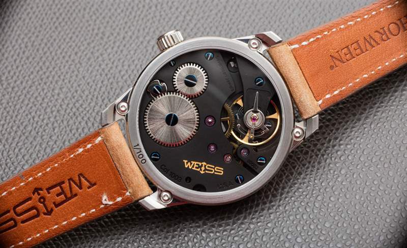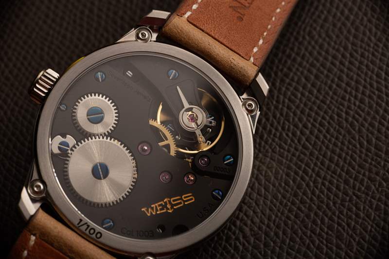 這種簡(jiǎn)單的手動(dòng)上鏈機(jī)芯被稱為 Weiss caliber 1003,它是 Cameron 喜歡使用的手動(dòng)上鏈機(jī)制類型的進(jìn)一步發(fā)展。除了一些專門(mén)的零件外,該機(jī)芯由 Weiss 在他位于洛杉磯的工作室制作。這種 3Hz、46 小時(shí)動(dòng)力儲(chǔ)存的機(jī)芯架構(gòu)在很久(很久)以前作為懷表機(jī)芯開(kāi)始使用,并且已經(jīng)多次修改和重新渲染用于手表。在這種形式下,它是 Weiss 完全獨(dú)一無(wú)二的,因此 1003 具有主要板,黑色(陽(yáng)極氧化),由 7075 鋁制成。Weiss 提到了這種鋁合金是如何用于一系列航空航天應(yīng)用的。廣告訊息廣告信息結(jié)束