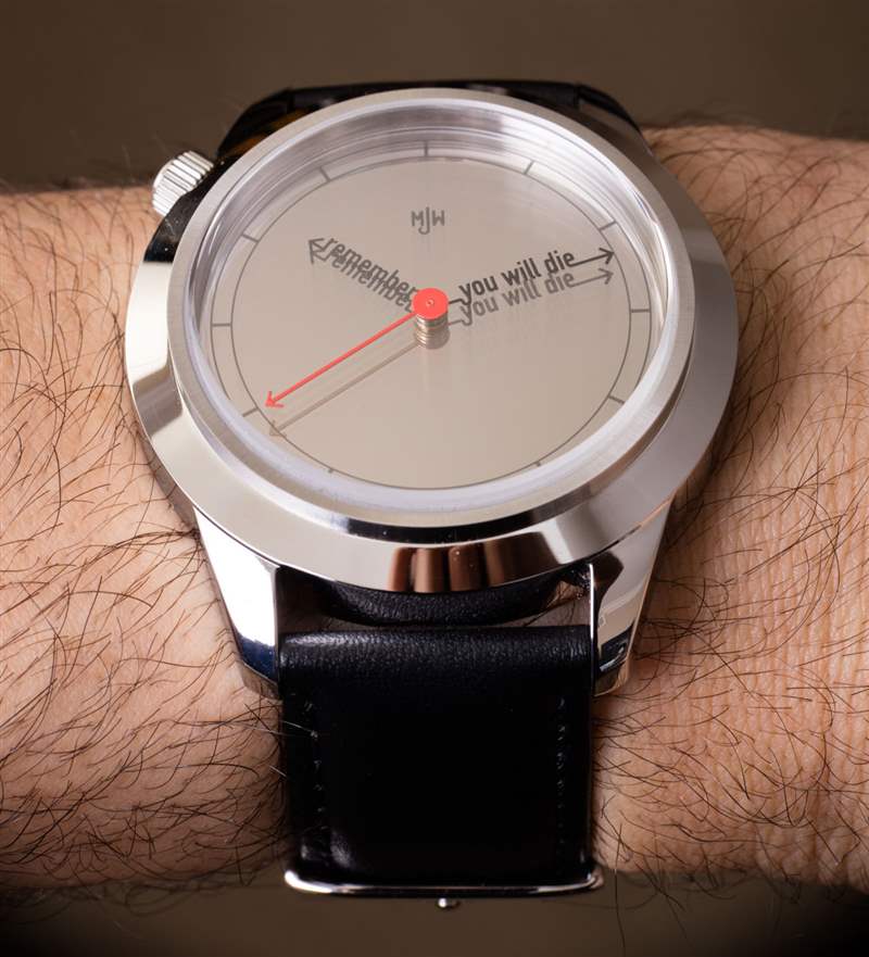 這些概念手表都被設(shè)計成一種發(fā)人深省的對象,讓我們質(zhì)疑手表在嚴(yán)格功能顯示時間之外的作用。“記住你會死”手表是一種削弱佩戴昂貴身份象征手表的人的方式,讓他們更加謙虛。