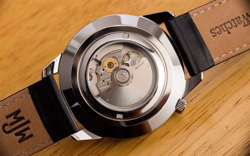 說到這一點(diǎn),Accurate XL 配備了日本 Miyota 9015 自動上鏈機(jī)芯,透過底蓋可以欣賞到樂趣。這款 4Hz、兩天動力儲存的自動機(jī)械機(jī)芯性能不錯,其適度的裝飾有助于提升這款平價手表的手感。