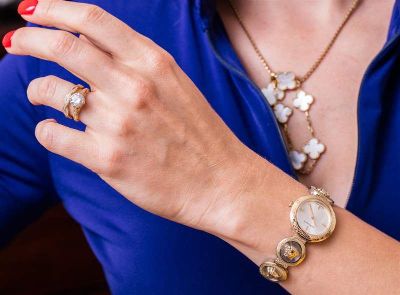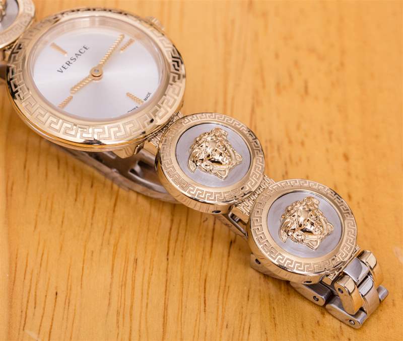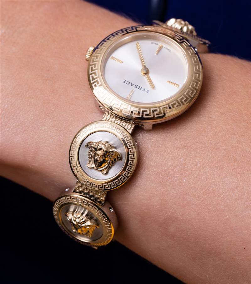 范思哲通過長期的設(shè)計和制造合作伙伴天美時集團生產(chǎn)手表已有一段時間了。在“時尚手表”的萬神殿中,與眾多同樣擁有手表的時尚品牌競爭對手相比,范思哲在哪里?這家著名的意大利時裝制造商由多年前在佛羅里達州邁阿密被謀殺的創(chuàng)始人的姐姐 (Donatella) 經(jīng)營,一直以其獨特的美學而嗡嗡作響,這種美學通常圍繞著古代神話中的美杜莎主題展開。今天,我來看一款范思哲女士腕表,型號為 VERF000818 Versace Medusa Stud Icon。