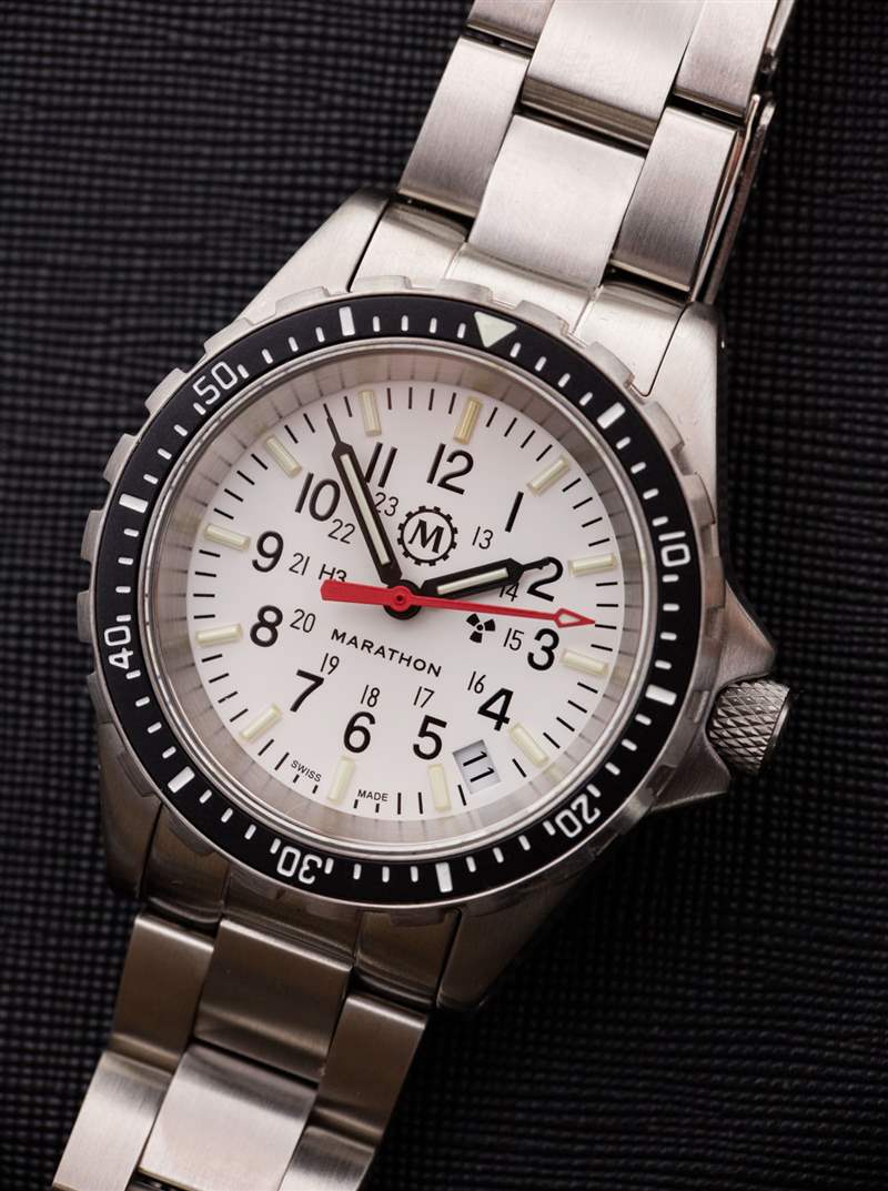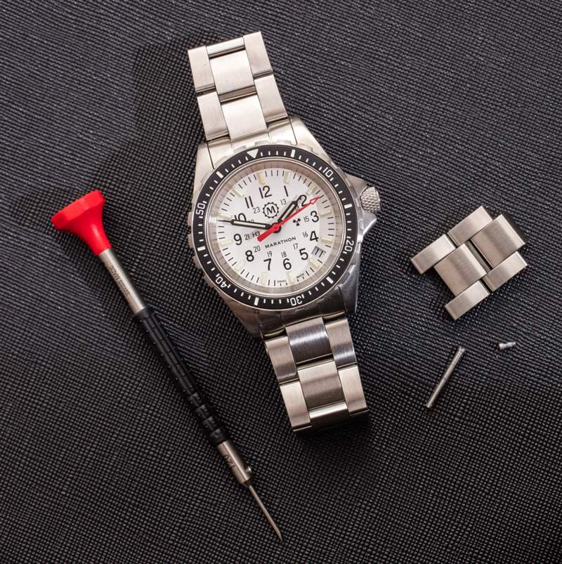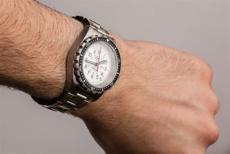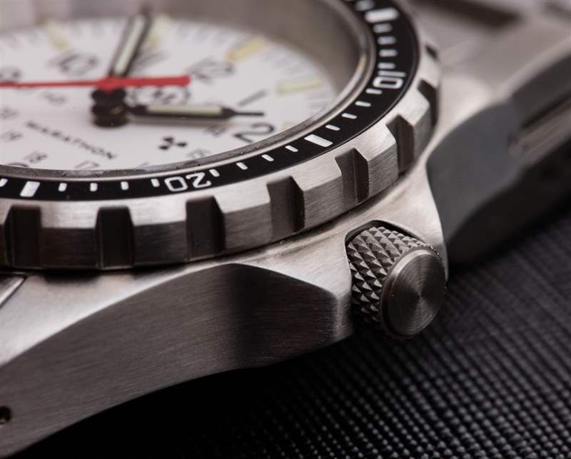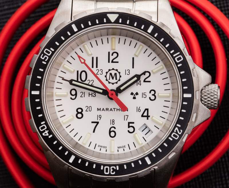 為了確保可讀性通常保持較高(與所有 Marathon 手表一樣),對(duì)手表進(jìn)行的另一個(gè)小改動(dòng)是指針的顏色,現(xiàn)在指針的顏色是黑色而不是白色。幾代人以來(lái),如果您想要一款 Marathon 軍用/運(yùn)動(dòng)/潛水表,唯一的顏色就是黑色——這正是軍方想要和認(rèn)可的。如果您的客戶有嚴(yán)格的需求并且只想要黑色表盤,那么這就是您要做的。今天,Marathon 肯定會(huì)繼續(xù)為其軍事客戶制造手表,但其面向消費(fèi)者的關(guān)注點(diǎn)正在成熟和發(fā)展良好。這意味著我們已經(jīng)知道和喜愛(ài)了很長(zhǎng)一段時(shí)間的工具手表系列的更多“時(shí)尚”擴(kuò)展。話雖如此,回想一下,盡管 Marathon 制造軍用手表已有 80 年歷史,