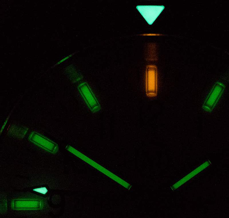 讓我們繼續(xù)談?wù)勈直肀旧怼_@是 Marathon 的入門級(jí)模型,這意味著它的價(jià)格相對(duì)實(shí)惠。Marathon 生產(chǎn)其最受歡迎的型號(hào)(包括 Medium Diver),配備瑞士石英和瑞士機(jī)械機(jī)芯選項(xiàng)。中型潛水員的石英和自動(dòng)機(jī)械型號(hào)之間的成本差異不到 300 美元,這證明了公司的公平定價(jià)做法。36 毫米寬的 MSAR 配備兩種機(jī)芯選項(xiàng),在這里我們看到它配備了瑞士 ETA 口徑 F06“高扭矩”機(jī)芯。為什么要高扭矩?因?yàn)槭中枰銐驈?qiáng)壯才能在那些被自發(fā)光氚氣管壓下的沉重的手周圍移動(dòng)。氚氣管是一項(xiàng)令人難以置信的功能,可確保 Marathon 手表表盤在所有照明條件下(尤其是完全黑暗)都清晰易讀。大部分是綠色的管子用在手上,以及每個(gè)小時(shí)標(biāo)記上。(12點(diǎn)鐘的管子是橙色的,以便在黑暗中更好地視覺(jué)定位表盤。)