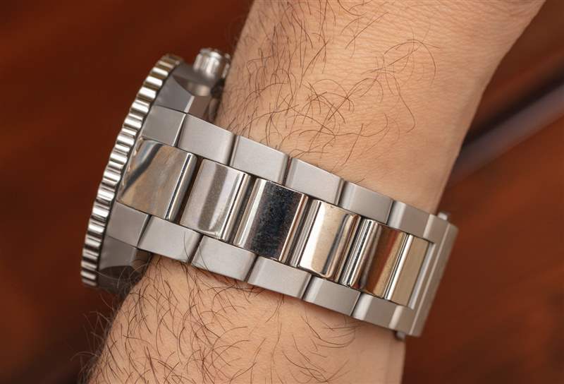 在某些方面,庫克船長可以被認為是一個可接近的海洋星球。我戴的越多,我就越覺得這個主題是 Rado 的目標。成本不到大多數歐米茄海洋星球產品的一半,這樣的主題肯定有市場。在表鏈上(相對于現有的織物表帶),Rado 選擇了一個拋光的中心鏈節,從而產生更“生活方式”(相對于工具表)的外觀。畢竟是雷達……