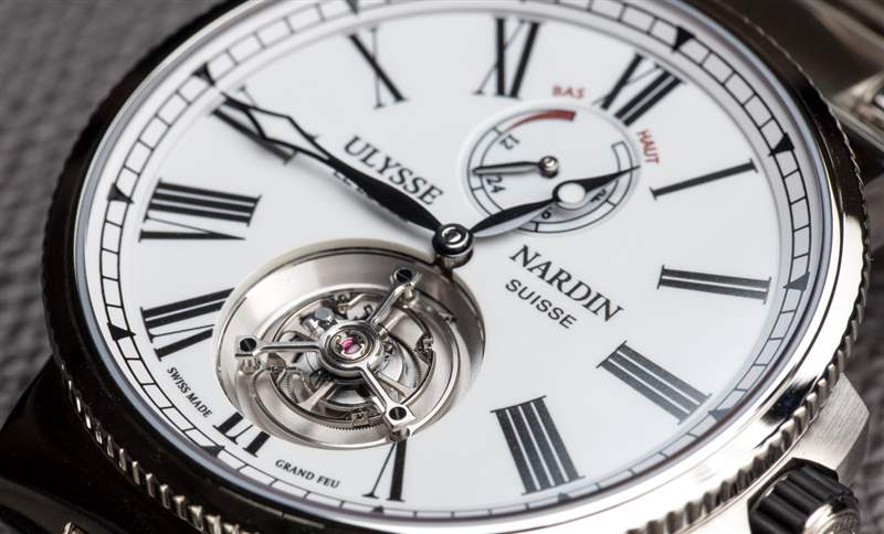 低價陀飛輪是否意味著犧牲性能?不,實際上。事實上,泰格豪雅(TAG Heuer)和雅典(Ulysse Nardin)的陀飛輪機芯是我比大多數陀飛輪機芯更值得信賴的機芯,事實上,其中一些價格較低的瑞士陀飛輪具有出色的性能。我或多或少肯定,您可以從 Ulysse Nardin 內部制造的 UN-128 自動陀飛輪機芯中獲得天文臺級的性能,該機芯位于 Marine Tourbillon 內部。該機芯采用可靠的硅平衡擺輪,擁有超過兩天的動力儲存,工作頻率為 4Hz。至少,在這個機芯中配備陀飛輪并不要求用戶為了佩戴它而犧牲任何功能或性能。出于這個原因,也因為我相信這是一個相對準確的動作,