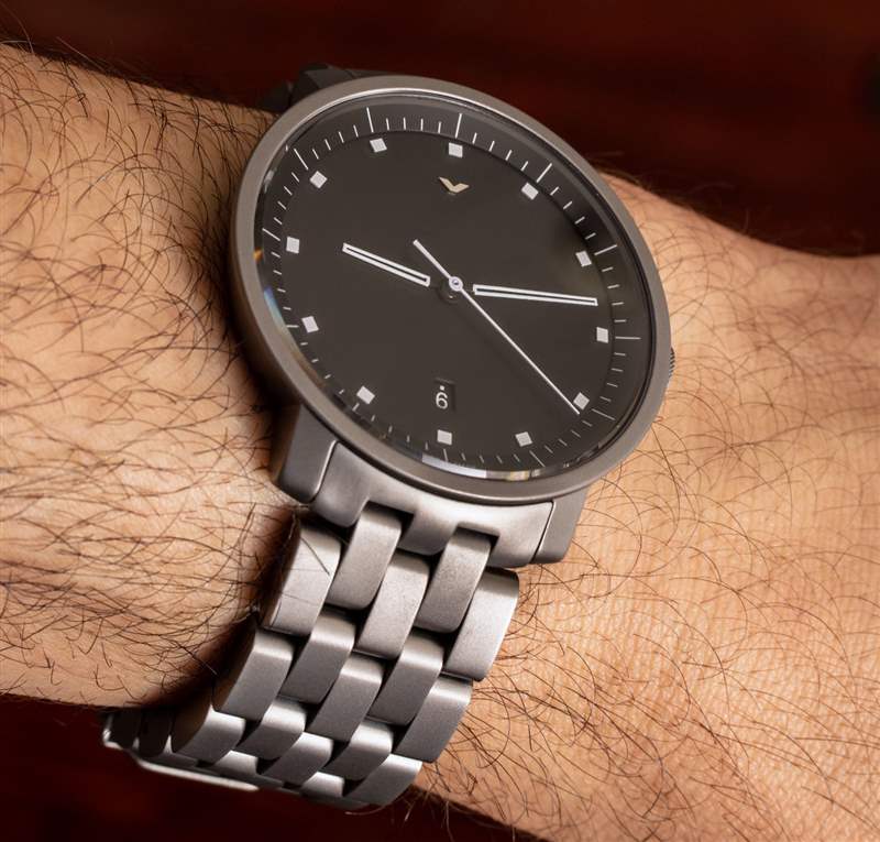還必須考慮價格,但總的來說,我認為可以肯定地說 Ventura V-Matic EGO 遠勝于典型的 Kickstarter 時計。也就是說,我懷疑 Ventura 是否會依賴 Kickstarter 來購買太多(如果有的話)未來的手表,因為據我了解,該品牌或多或少已經建立起來。質量方面,您在匹配的手鏈上有一個深色啞光鈦金屬表殼。Ventura 為 V-Matic EGO 提供黑色和銀色表盤,以及配套的表鏈或黑色皮革表帶。銀色表盤很有趣,因為它的表面處理和藍色指針和時標。它可能是節目中的明星,但我想看看黑白表盤 V-Matic EGO,因為它讓我想起了我昨天美好回憶的 Ventura。