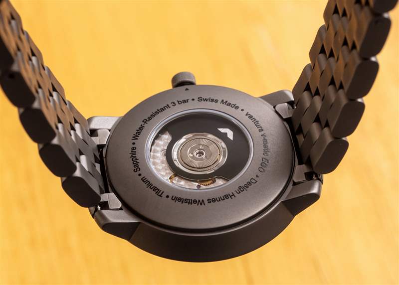 說到日期輪,Ventura V-Matic EGO 內部的機芯是瑞士制造的 ETA 2892-A2 自動機芯,這是一款相當不錯的自動機芯,擊敗了更常見的 ETA 2824,尤其是在它的薄度方面。您可以通過底蓋窗口查看機芯。我真的很喜歡佩戴 Ventura V-Matic EGO,因為它具有永恒的風格和定位為“設計愛好者的產品”。它既舒適又易于閱讀,對于今天的許多新手手表愛好者(他們往往經常參加 Kickstarter 鐘表活動)來說,享受 Ventura V-Matic EGO 可能比最初對它感到興奮更容易。如果有足夠多經驗豐富的手表愛好者了解并支持文圖拉的復興,那么未來幾年它可能會非常光明。今天的 Ventura 現在已經證明它可以重現 Ventura 過去的美學魔力;問題仍然是他們是否對其未來有遠見。