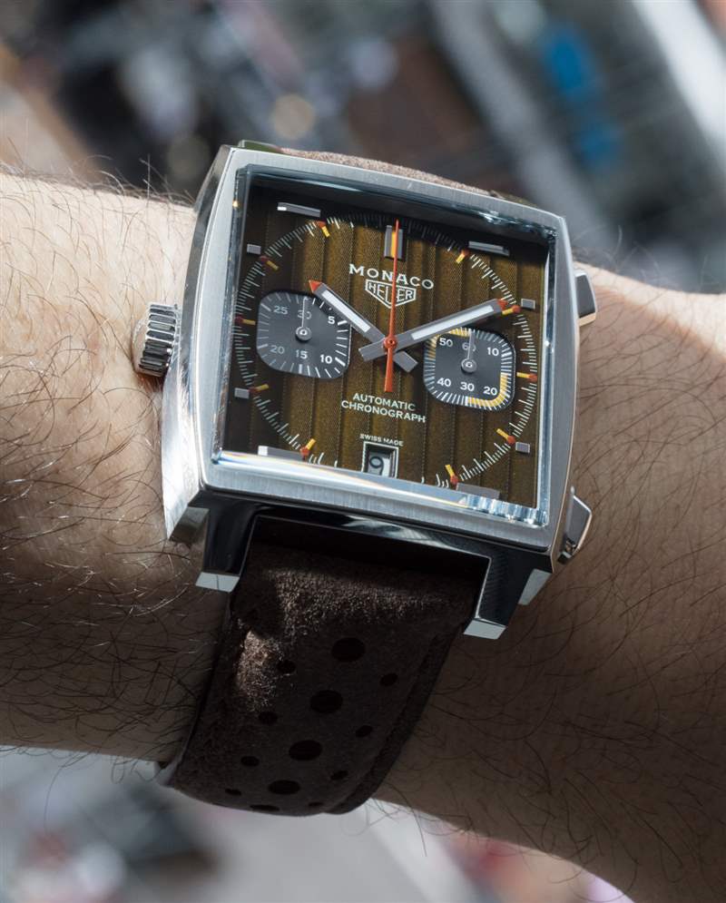 為慶祝摩納哥成立 50 周年,豪雅表決定將 50 年分割成五個十年長的部分。每個十年都會有自己的限量版手表,靈感來自那個時代的視覺效果。在 2019 年摩納哥大獎賽上,僅發(fā)布了五款限量版 50周年摩納哥腕表中的一款。這款腕表被稱為 Heuer Monaco 1969-1979 限量版,其典型特征是金屬橄欖綠色表盤,飾有垂直日內瓦波紋風格的裝飾條紋。aBlogtoWatch 在此處親身體驗了 TAG Heuer Monaco 1969-1979 限量版腕表,其中包含更多細節(jié)、圖片和背景故事。