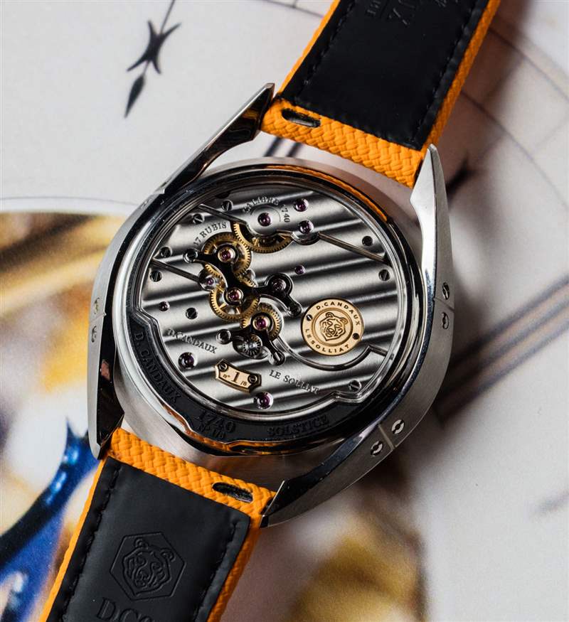 總部位于瑞士 Valle-de-Joux 的David Candaux是一個(gè)多代制表家族的一員。他住在制表大師和金屬裝飾師 Philippe Dufour 附近,他的作品在 Jaeger-LeCoultre、 MB&F(HM6 機(jī)芯)、Fonderie 47、Montandon等品牌的超豪華時(shí)計(jì)中占有重要地位。幾年前,他——和他的許多同時(shí)代人一樣——在自己的“D.?Candaux”的名字并發(fā)布了他的 DC 1 手表。迄今為止,他的每款時(shí)計(jì)都限量發(fā)行八枚。在 DC 1 模型之后,他繼續(xù)使用aBlogtoWatch 在這里親身體驗(yàn)的著名 D. Candaux DC6 半獵人.?2019 年,David Candaux 發(fā)布了 DC 6 Half Hunter 的新版本,即 DC 6 Solstice Titanium Half Hunter 1740(簡(jiǎn)稱“DC 6 Solstice”),它更具俏皮感和現(xiàn)代感,色彩鮮艷,可作為限量版八件(每件),帶有紅色、藍(lán)色或橙色(如圖)。