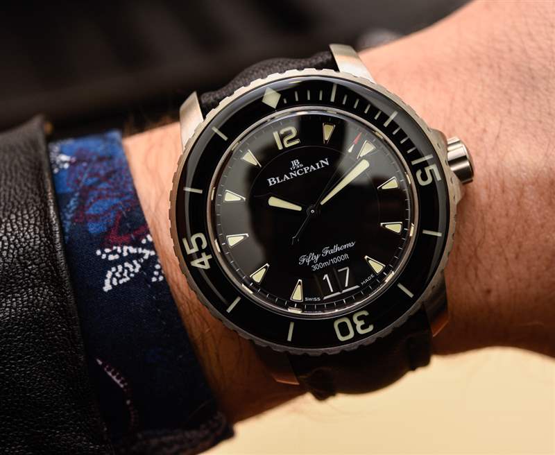 Blancpain的五十噚系列高端潛水表一直是我最喜歡的豪華運(yùn)動手表系列之一。在 2018 年巴塞爾國際鐘表珠寶展上,寶珀推出了五十噚系列中的一些新型號,其中包括我最喜歡的這款寶珀五十噚 Automatique Grande Date 5050。讓我們將五十噚 5050 與仍然相當(dāng)受歡迎的寶珀五十噚 5015 進(jìn)行比較,我在 aBlogtoWatch 上對其進(jìn)行了評論這里.?5050 是一款更新的型號,具有更新的機(jī)芯和不同的表殼材料。話雖如此,它不是 5015 的替代品,而是一種額外的風(fēng)味。目前形式的五十噚系列無疑是一個老化的模型(最初于 2007 年首次亮相)——盡管它在上市十多年后表現(xiàn)良好。2018 年五十噚 Grande Date 5050 可能不會讓 5015 的所有者“升級”,但它可以很容易地讓更多人佩戴這款真正有吸引力且性能良好的高端瑞士潛水表。